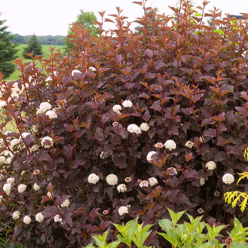 Насыщенные пурпурные оттенки этого пузыреплодника прекрасно смотрятся с белыми гортензиями, спиреями, флоксами и другими красивоцветущими растениями.