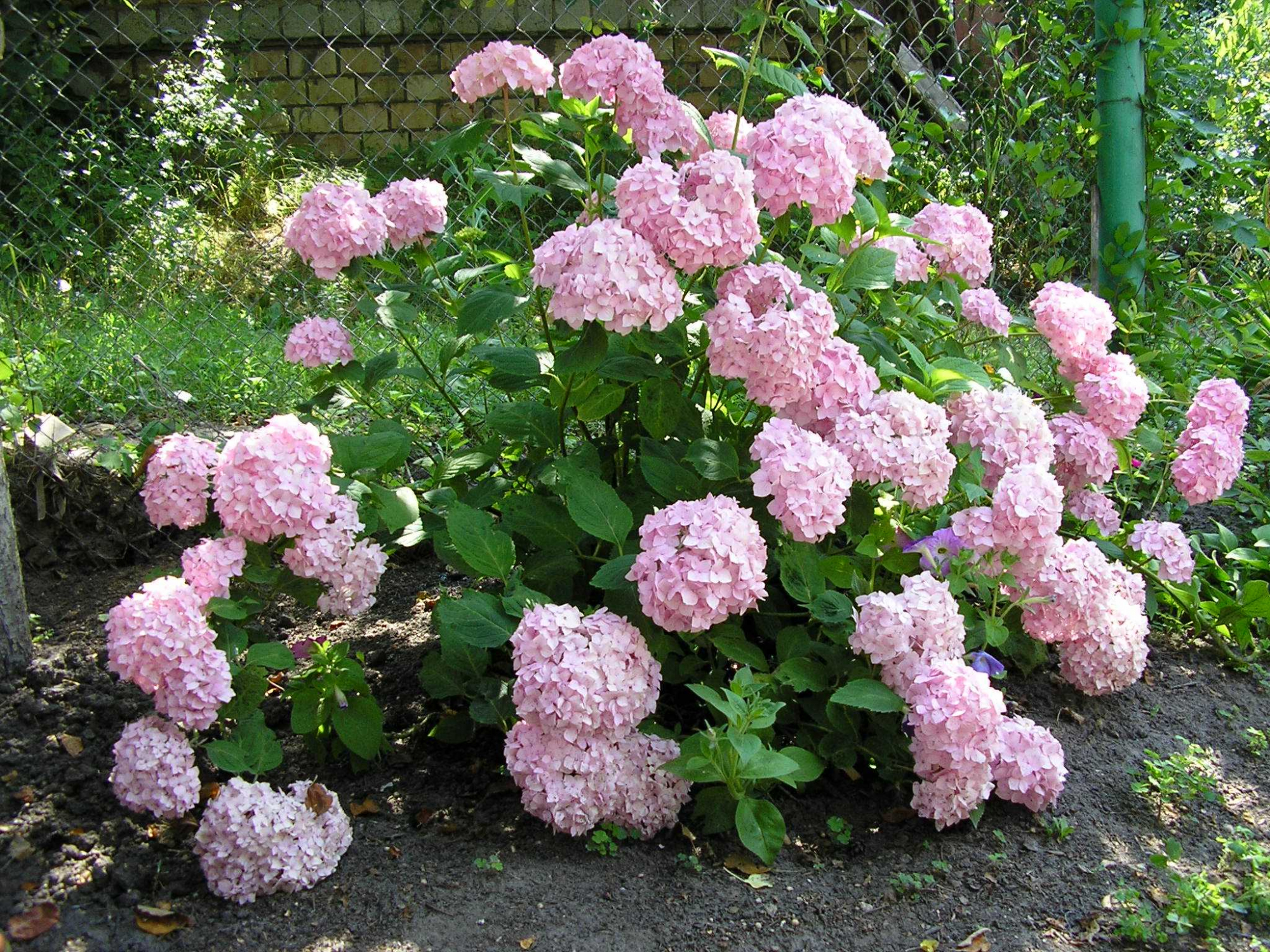 Соцветия крупные, округлой формы, в зависимости от состава почвы цветы могут приобретать насыщенный малиновый или нежно-розовый оттенок.