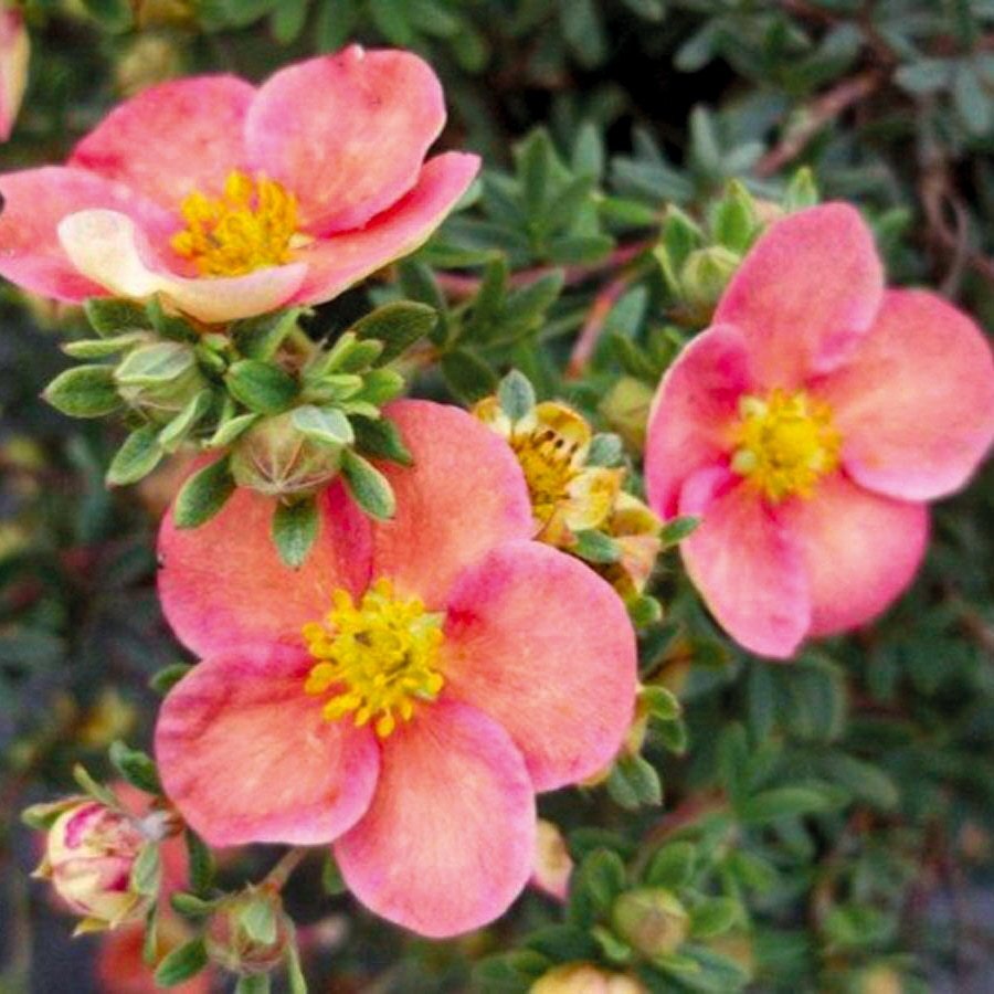 Цветы двухцветные, абрикосово-розовые, крупные, диаметром до 5 см, по мере цветения становятся розовыми. Обильное непрерывное цветение радует взгляд на протяжении всего лета, вплоть до октября.