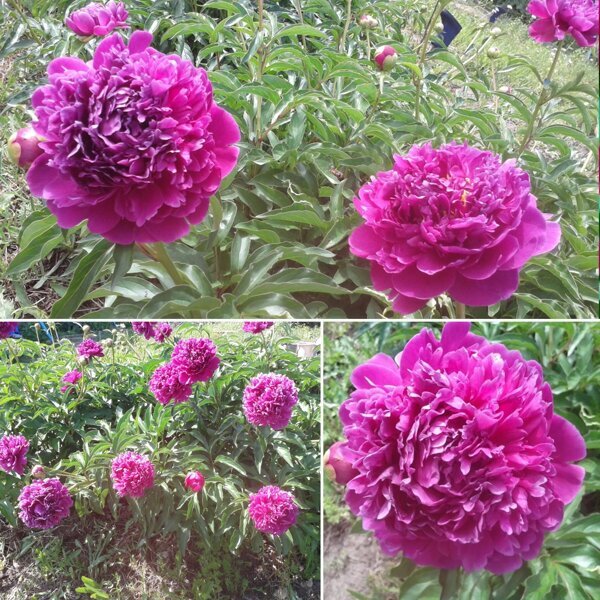 Махровый розовидный, цветок диаметром 17 см, тёмно-красный с синим оттенком, с шелковистым блеском. Куст мощный, хорошо разрастается.
