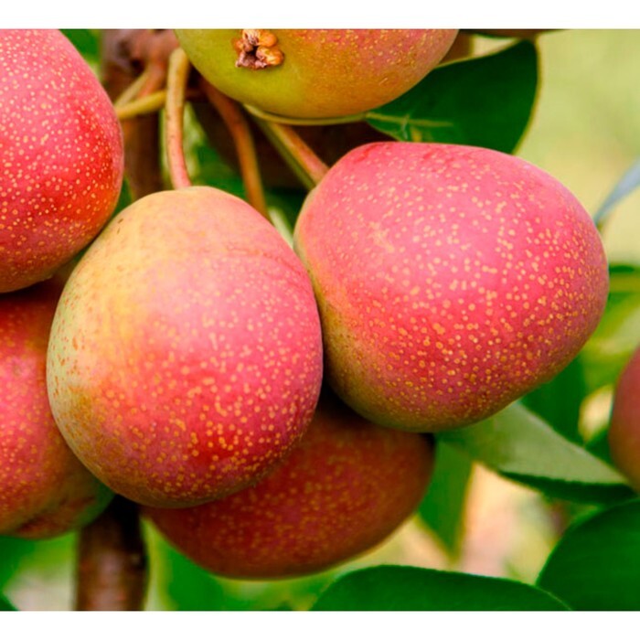 Плоды средние (90-110 г), грушевидной формы, при созревании кремовые, с розовым румянцем.