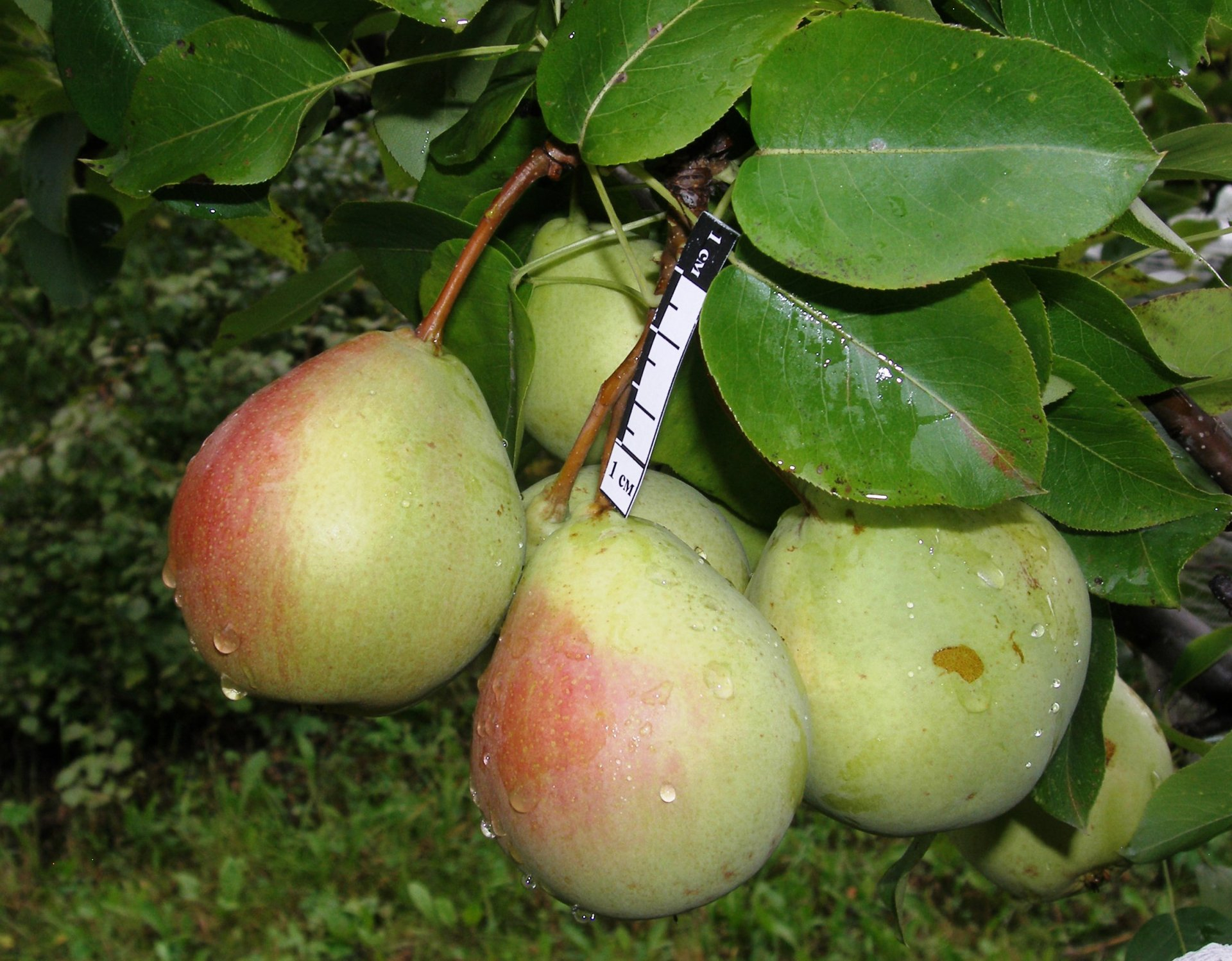 Плоды массой до 180 г, широко-грушевидные, желто-зеленые с розовым румянцем с солнечной стороны.