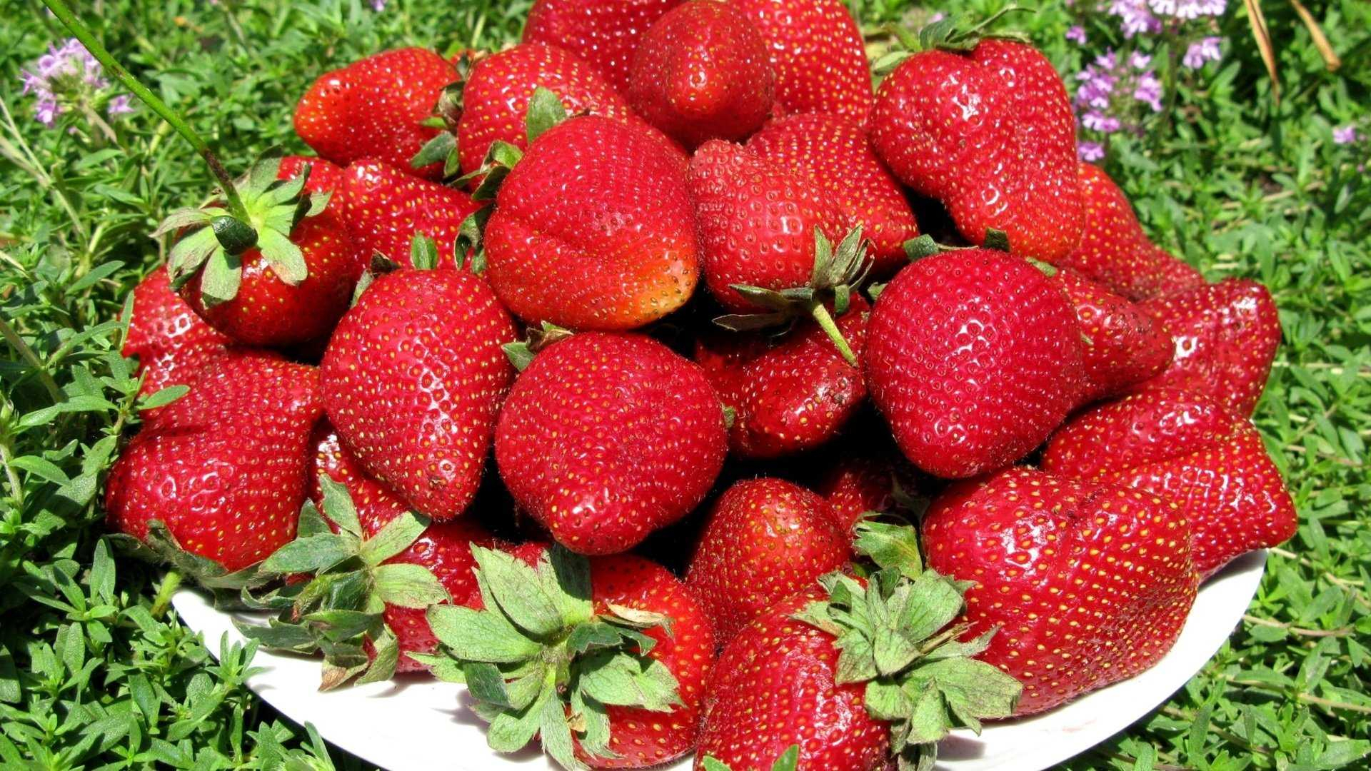 Зрелая клубника приобретает насыщенный, темно-вишневый цвет.