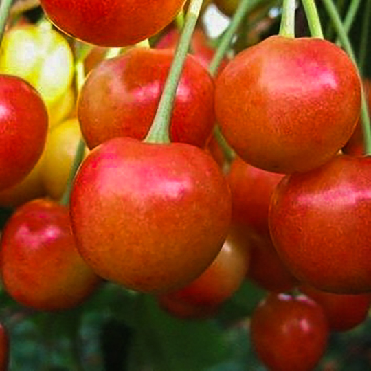 Плоды массой до 5 г, розовые, мякоть желтая, плотная, хрящеватая, сладкая, сочная.