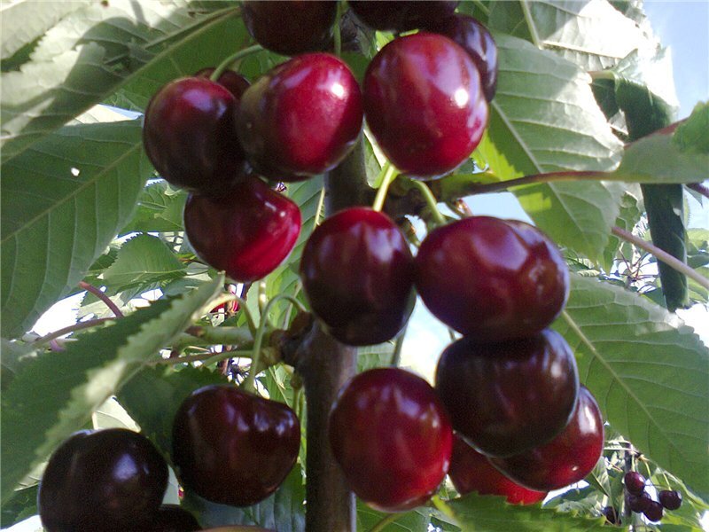 Плоды массой до 7г, округлые, темно-красные, при полном созревании почти черные.