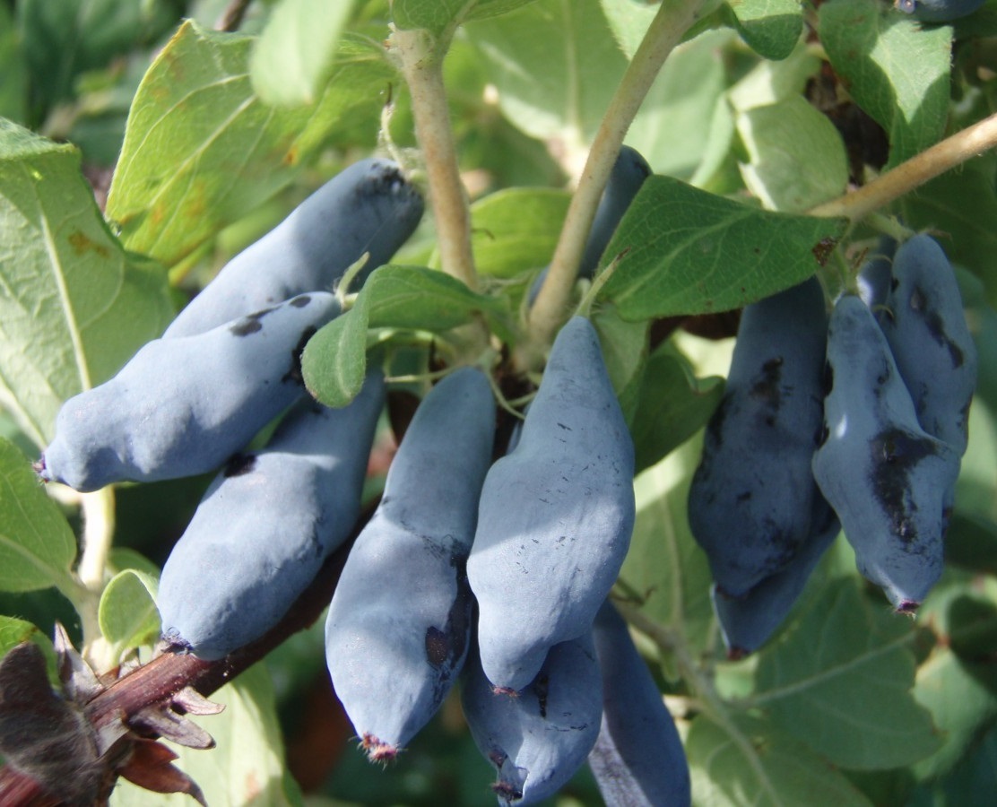 Урожай созревает в конце июня, ягоды крупные 2,5г, длиной около 2 см, кожица синяя с восковым сизым налетом.