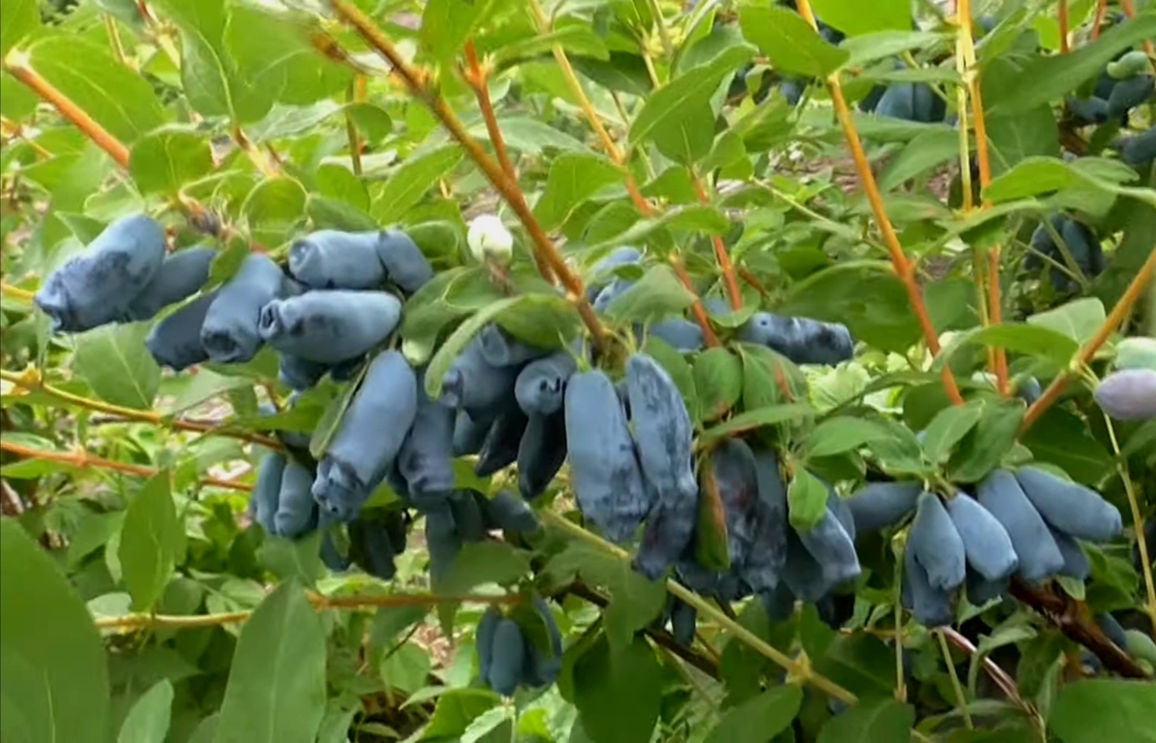 Плоды имеют вытянутую форму – темно-пурпурные или сине-черные с восковым налётом на поверхности, весом до 2 г.